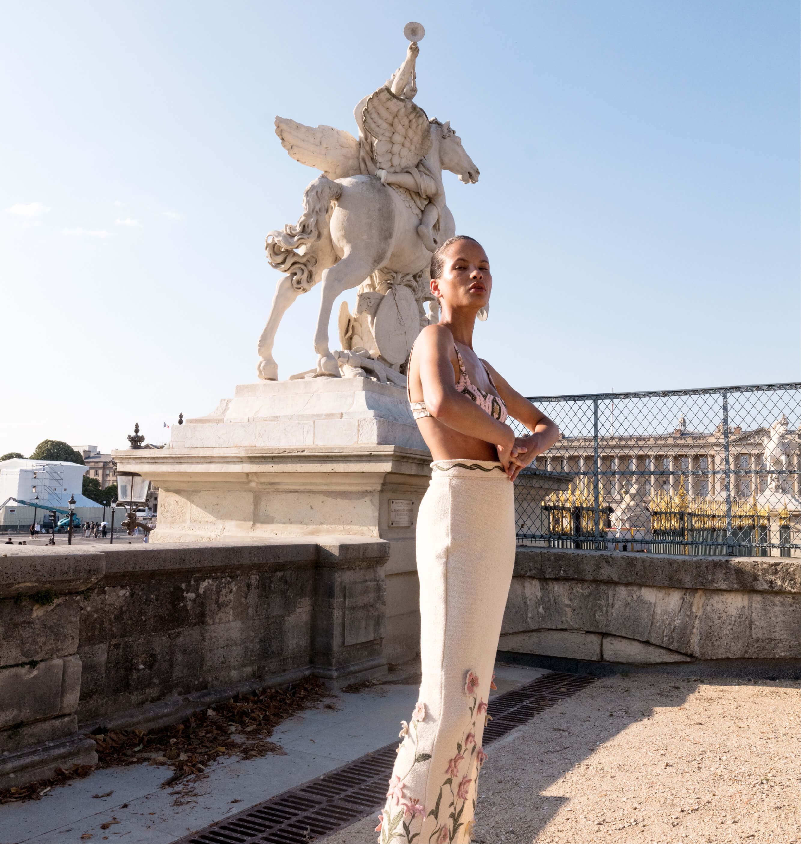 Agua takes great pleasure in presenting an exquisite collection of garments designed for sophisticated layering, crafting versatile urban ensembles that effortlessly transition between the vibrancy of coastal cities and the dynamic energy of concrete jungles. From luxuriously snug turtle-neck bodysuits that seamlessly complement vibrant sweaters and opulent coats, to gracefully draped midi dresses that harmonize with knee-length boots; or the allure of an enchanting floral skirt paired with a casually elegant white boyfriend button-up. Immerse yourself in Marea’s resort glamour, where newfound day-to-day perspectives unfold against the backdrop of this editorial, captured amidst the blossoms of springtime Paris.